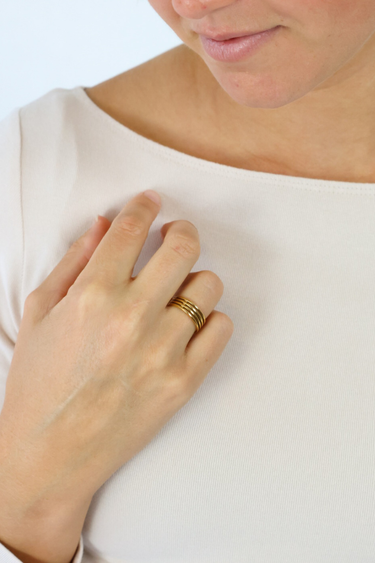 The My Soul Ring in Gold brings effortless Nashville sophistication to your everyday style. Designed with three sleek lines connected on the sides, it gives the illusion of three stacked rings in one elegant piece. Perfect for stacking or wearing solo, this gold ring adds a modern, polished touch to any look. Ideal for women of all ages, the My Soul Ring is a versatile accessory that blends timeless charm with trendy, fashion-forward appeal.