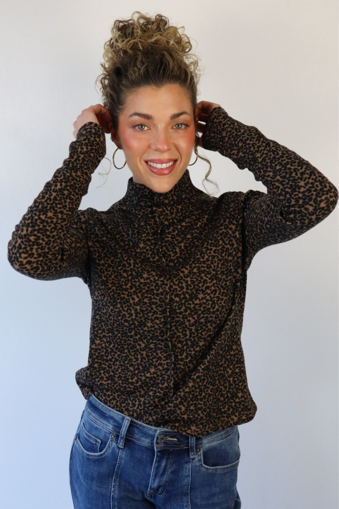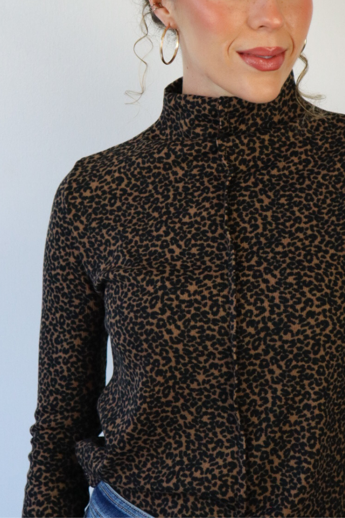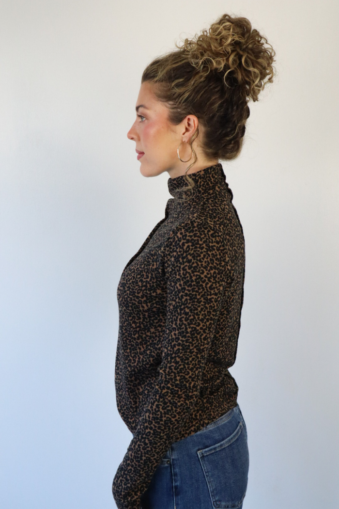 Mock Neck Leopard Top