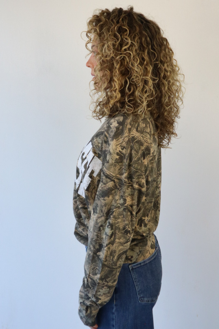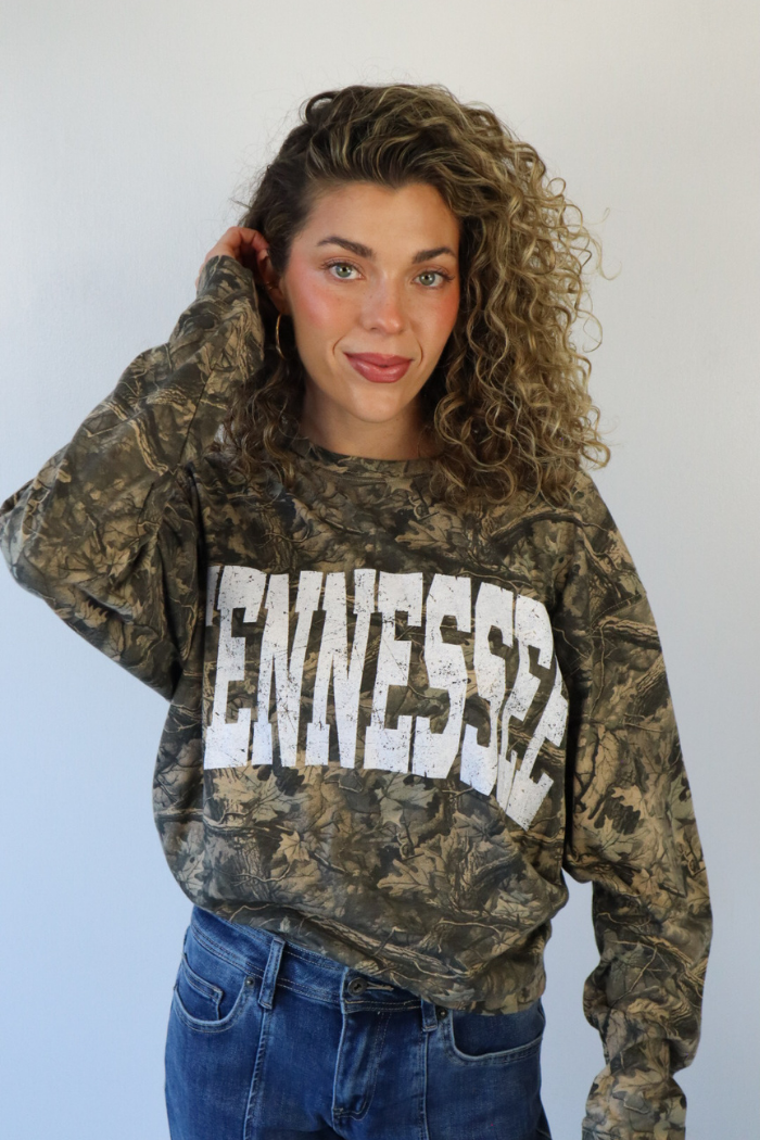 Show off your state pride with the Camo Tennessee Graphic Long Sleeve! This trendy camo top features a bold Tennessee graphic that adds a stylish edge to your casual look. With its comfy fit and long sleeves, it’s perfect for layering or wearing solo. Pair it with jeans and sneakers for an easy everyday outfit or style it with a denim jacket for that cool Nashville vibe. A must-have for all ages and all seasons!