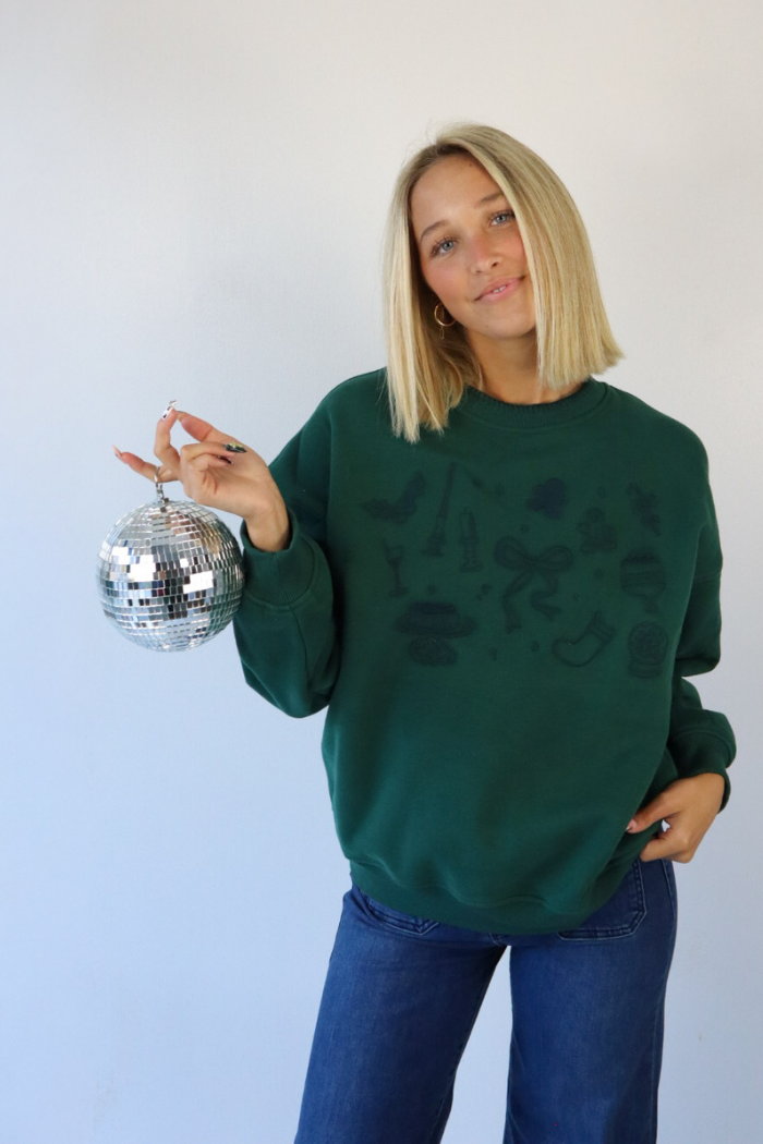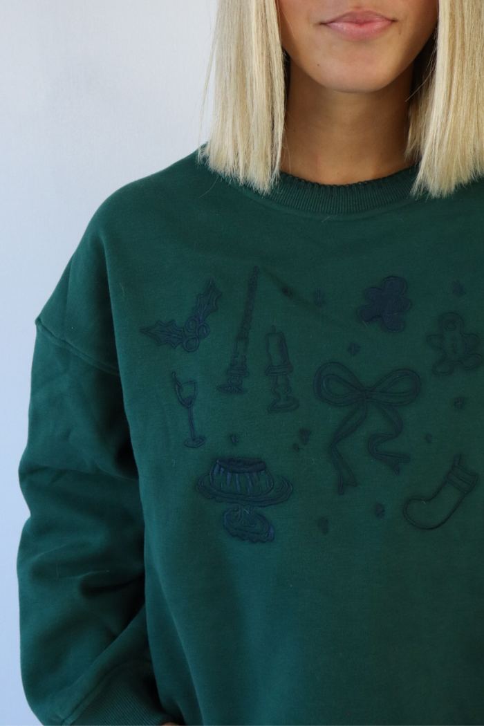 Holiday Icon Embroidered Green Sweatshirt