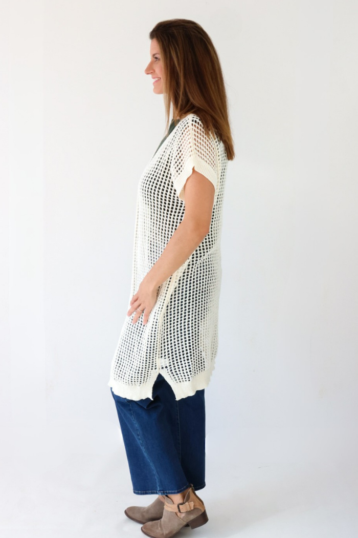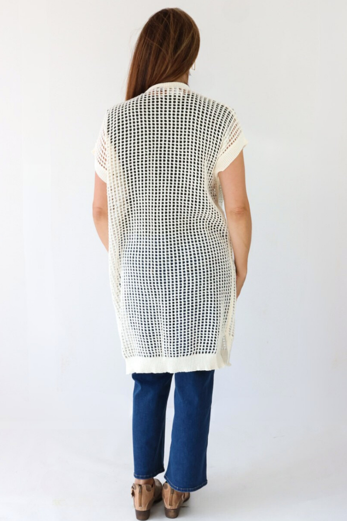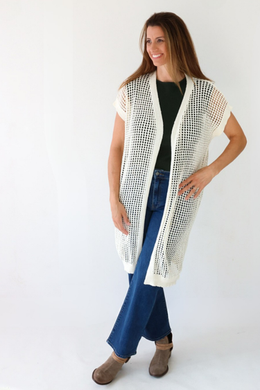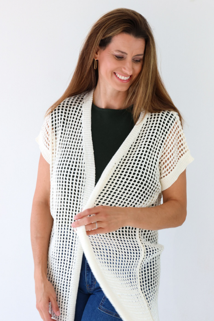 The Open Knit Long Cardigan in Cream is a versatile layer that adds effortless style to any outfit! Designed with a breezy open knit and short sleeves, this cardigan is perfect for transitioning seasons while keeping your look polished. Pair it over a fitted tank and denim for casual days or drape it over a dress with boots for a chic Nashville-inspired vibe that feels both cozy and trendy!