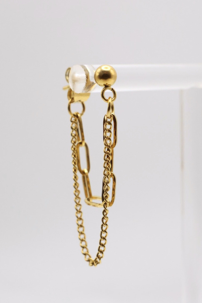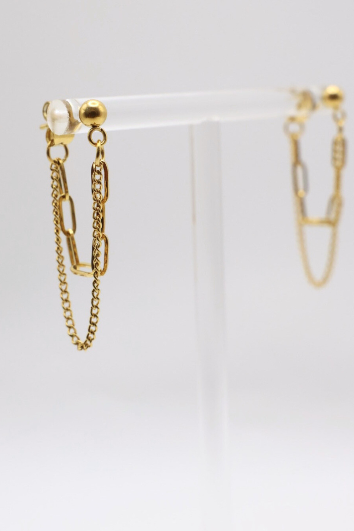 The Amelia Layered Earrings bring a modern, layered twist to any outfit with their gold chain design. Waterproof, tarnish-resistant, nickel-free, and hypoallergenic, they are jewelry you never have to take off. Featuring two chains—one open link and one sleek gold—these earrings pair perfectly with casual tees, trendy blouses, or elegant evening looks, adding effortless Nashville style and sophistication to every ensemble!