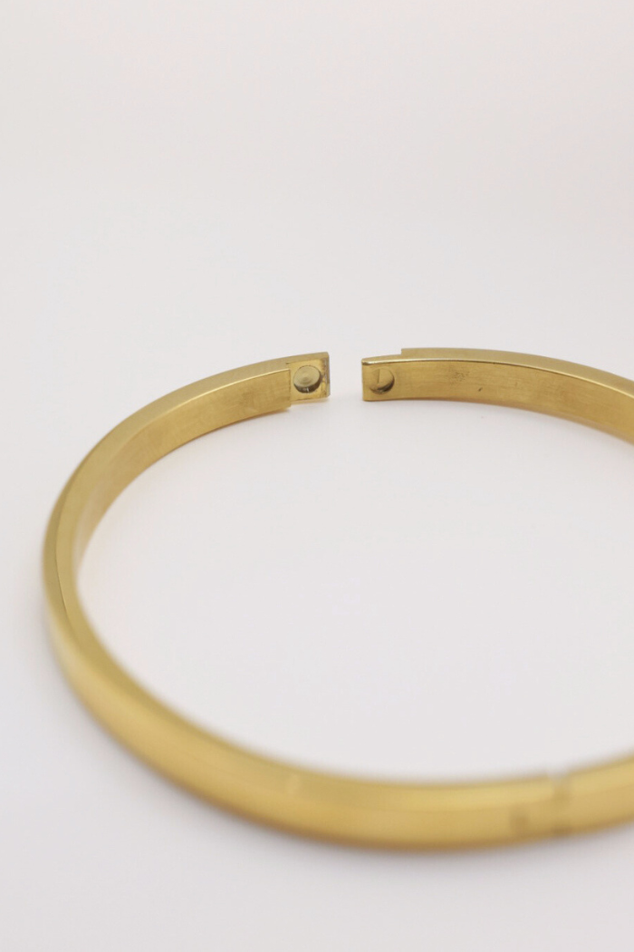 The Maria Bracelet in Gold is a sleek clasp bangle designed for a seamless, polished look that never goes out of style. Its modern silhouette makes it perfect for Nashville-inspired fashion, whether worn solo for understated elegance or stacked with other bracelets for a trendy layered vibe. From casual days to elevated nights, this timeless piece adds effortless shine to every outfit. It’s jewelry you never have to take off!