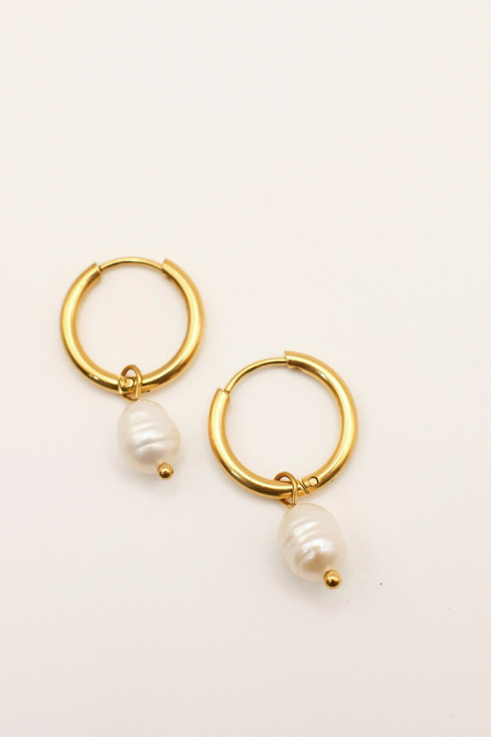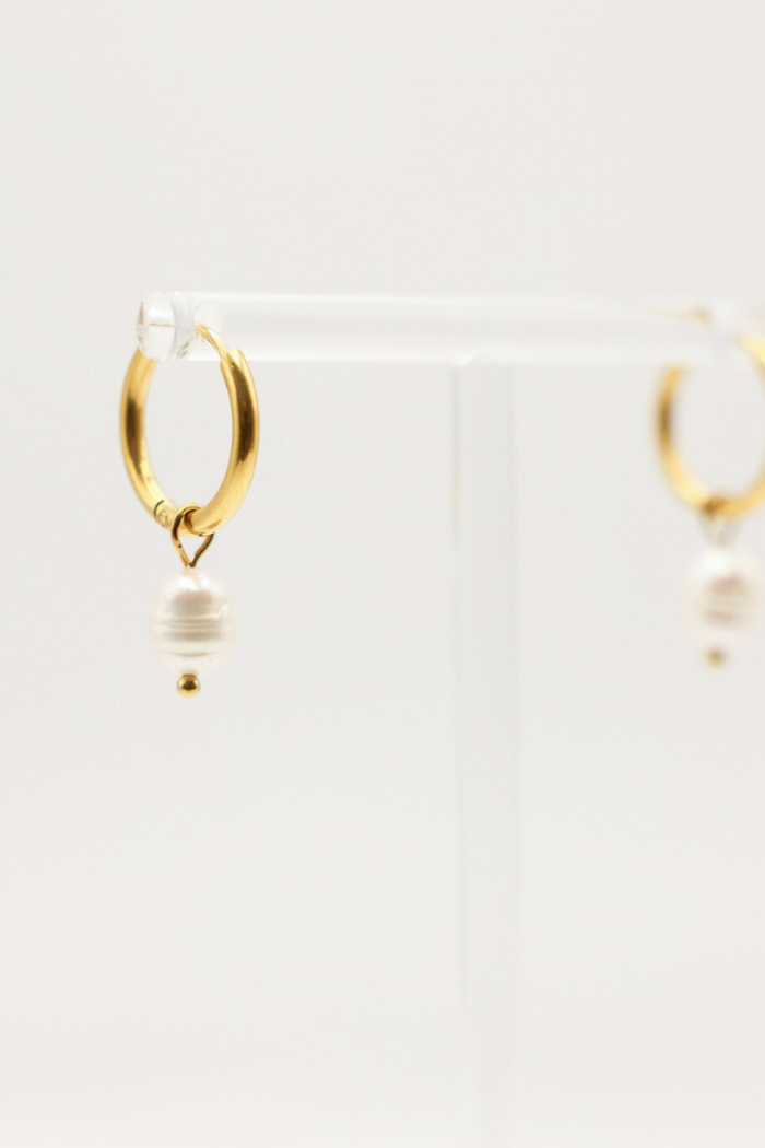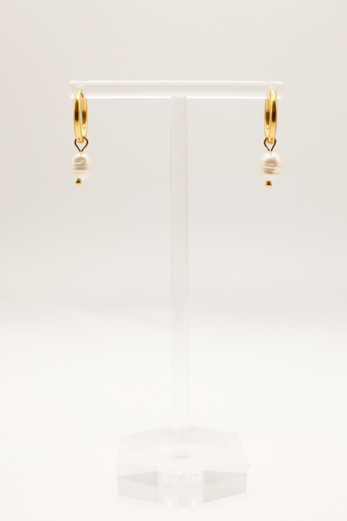Elevate your everyday style with the Nights On The Shore Earring, a chic gold hoop featuring a full closure and a delicate pearl bead for a polished finish. Designed to fit every age and every Nashville vibe, this accessory is waterproof, tarnish resistant, nickel free, and hypoallergenic so you can wear it from morning to night without worry. Style it with casual denim, night out looks, or layered jewelry for a timeless touch!