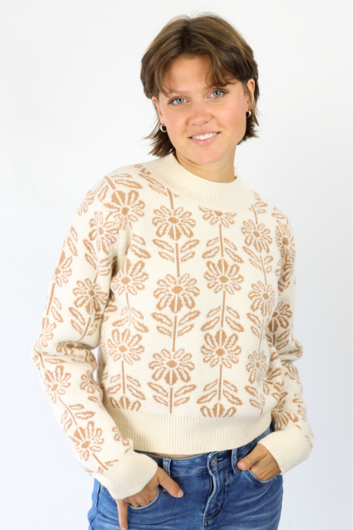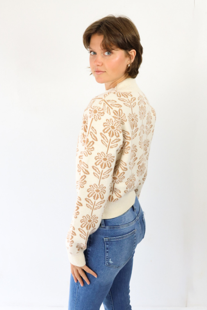 Floral Pattern Sweater in Beige