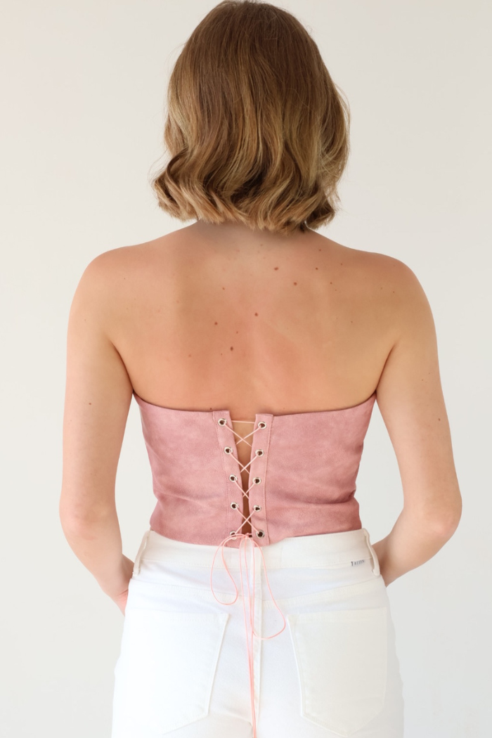 Faux Leather Embroidered Corset Top in Pink