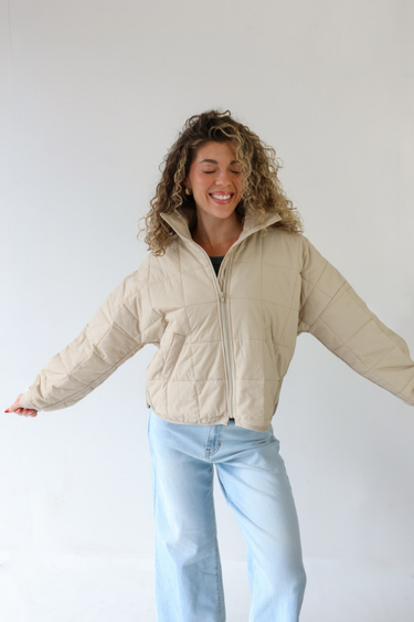 The Zip Up Quilted Puffer Jacket in khaki is a must-have for trendy Nashville style, offering warmth and effortless fashion for all ages. Its quilted design and practical zip-up front with pockets make it perfect for layering over casual or chic outfits. Pair with jeans and boots for a city-ready look or throw over leggings for a cozy, on-the-go style. Stay stylish and comfortable through cooler days!