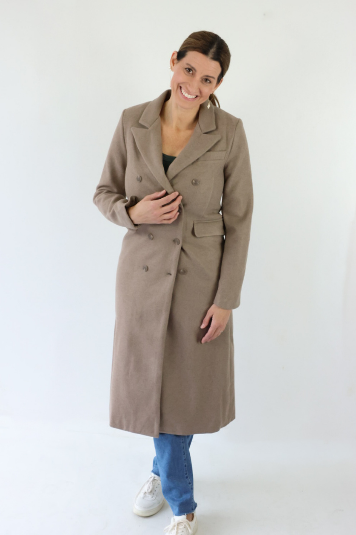 Double Breasted Long Coat in Taupe