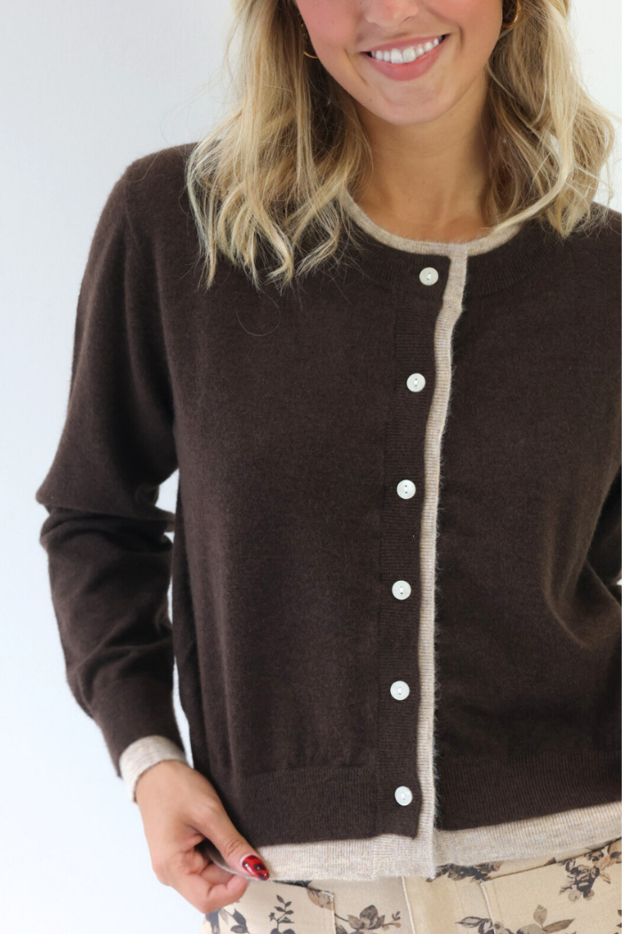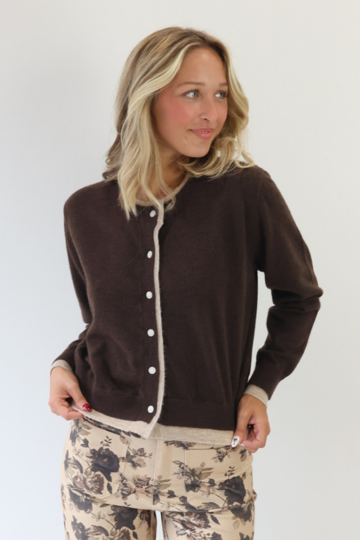 Cozy up in effortless style with the Double Layered Button Down Cardigan, the perfect piece for fall in Nashville. Featuring a warm mix of brown and taupe tones, this cardigan’s unique double-layered design adds texture and depth to any outfit. Wear it buttoned up with jeans for a polished casual look or layer it over a dress for an elevated touch. Soft, stylish, and versatile, it’s the ultimate fall layering essential you’ll reach for again and again!