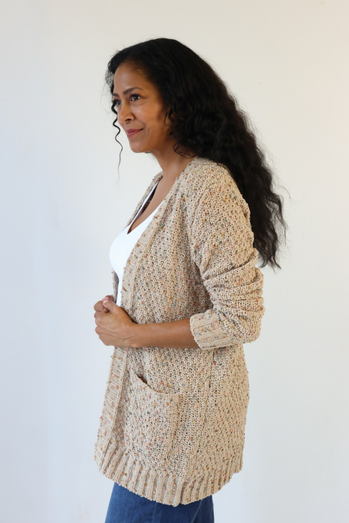 Multi-Color Popcorn Cardigan in Taupe