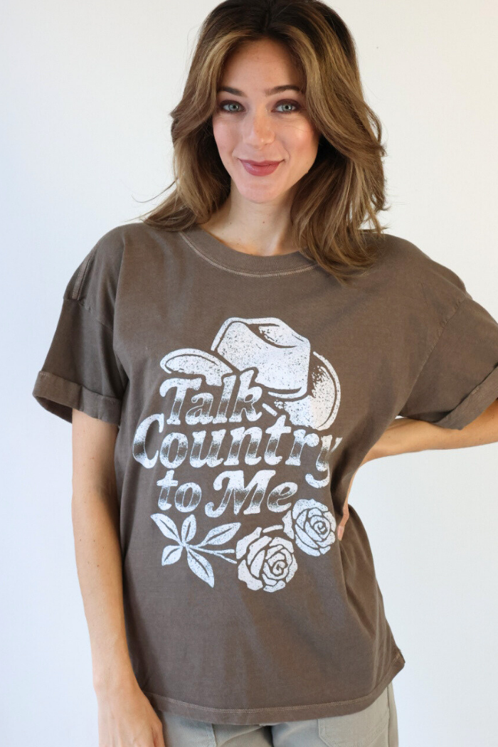 Talk Country To Me Tee in Brown