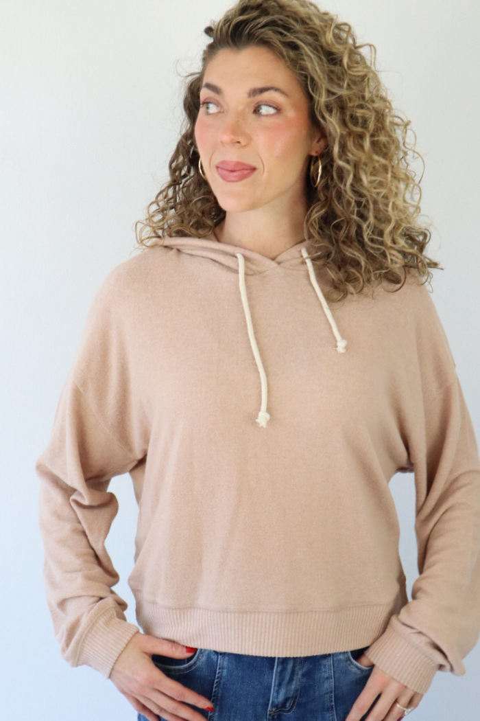 Stay cozy and stylish in our Brushed Hoodie in Taupe! This lightweight sweatshirt is crafted from an ultra-soft brushed fabric that feels amazing all day long. The neutral taupe color and crisp white hood ties give it a modern, effortless look perfect for every season. Pair it with leggings or denim for a casual Nashville-inspired outfit that’s equal parts comfort and style for women of all ages!