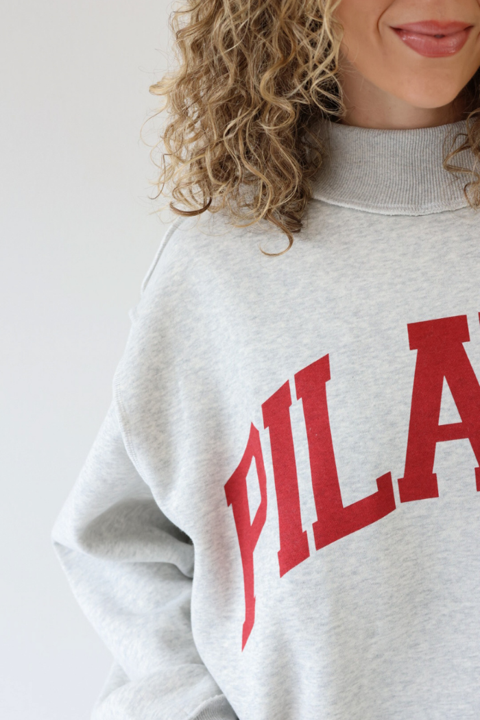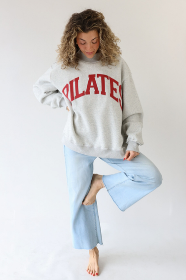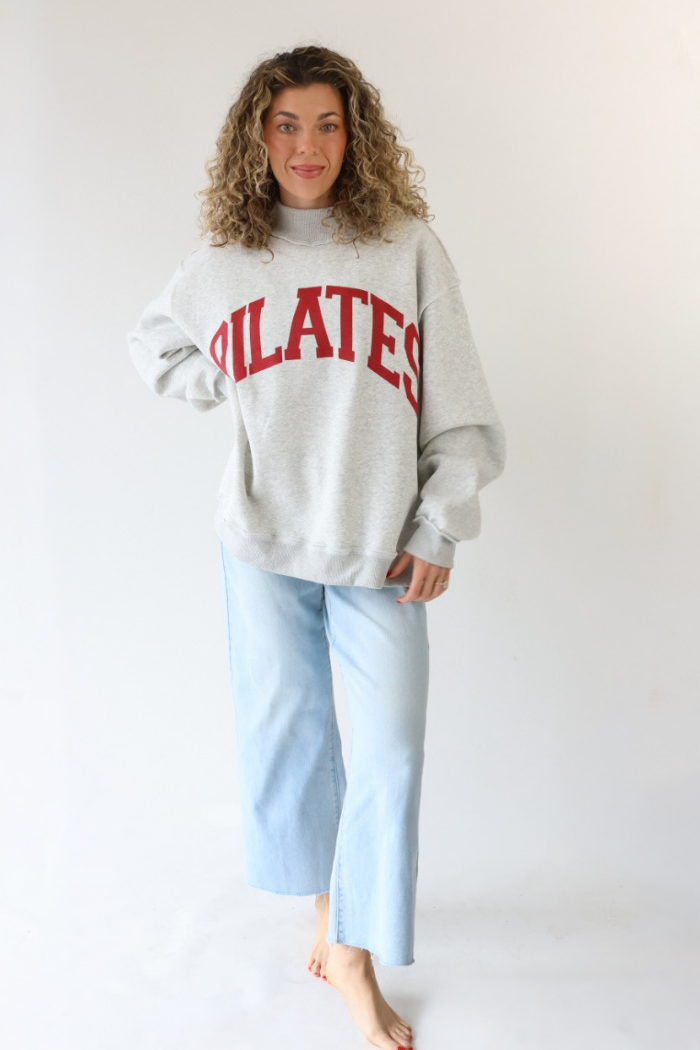 Stay stylish from studio to street with the Reversible Pilates and Yoga Mock Neck Sweatshirt in Heather Grey. This cozy layer features a chic mock neck and a reversible design that lets you switch between Pilates and Yoga by flipping it inside out. Perfect for heading to and from workout classes or lounging at home, it pairs effortlessly with leggings, joggers, or denim for a trendy look that works for all ages in Nashville fashion circles!