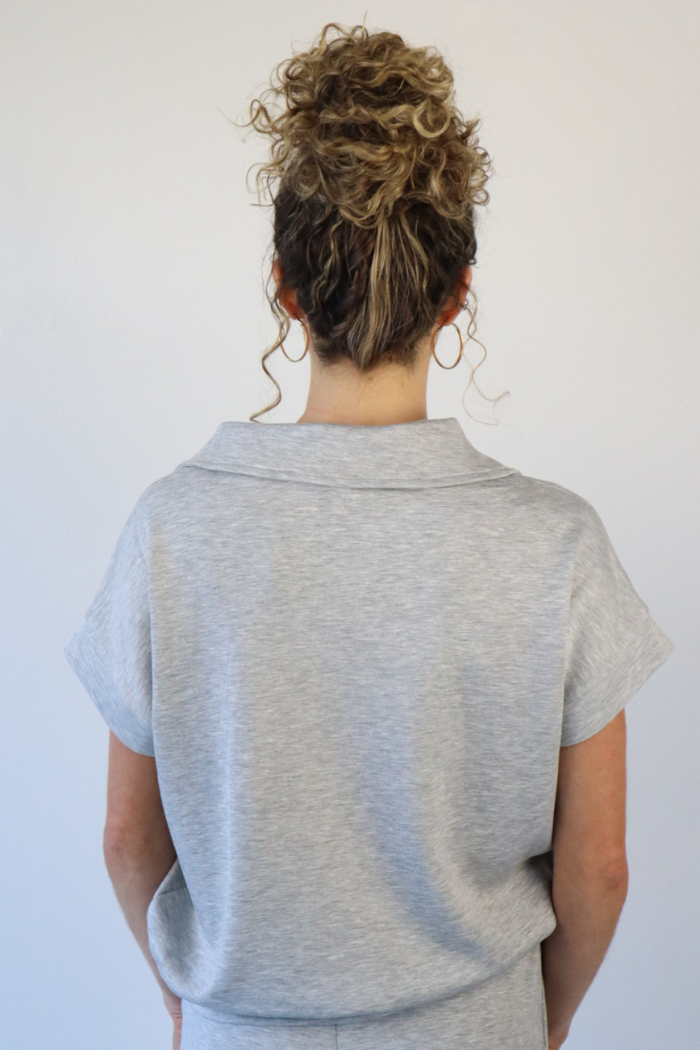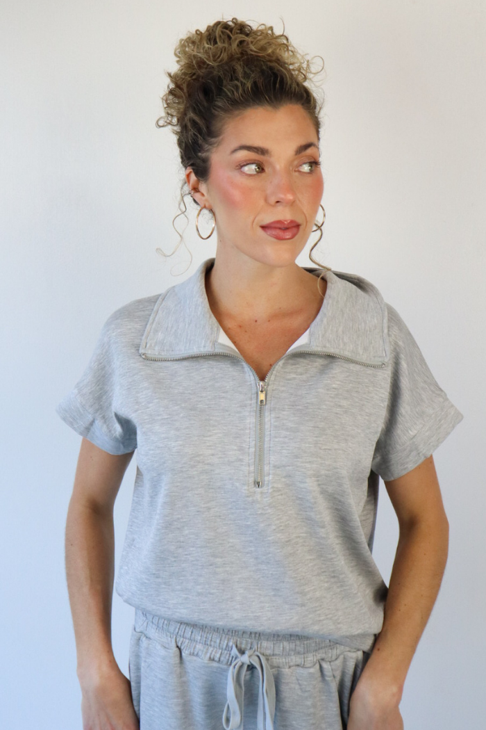 Short Sleeve Half Zip Scuba Top in Grey