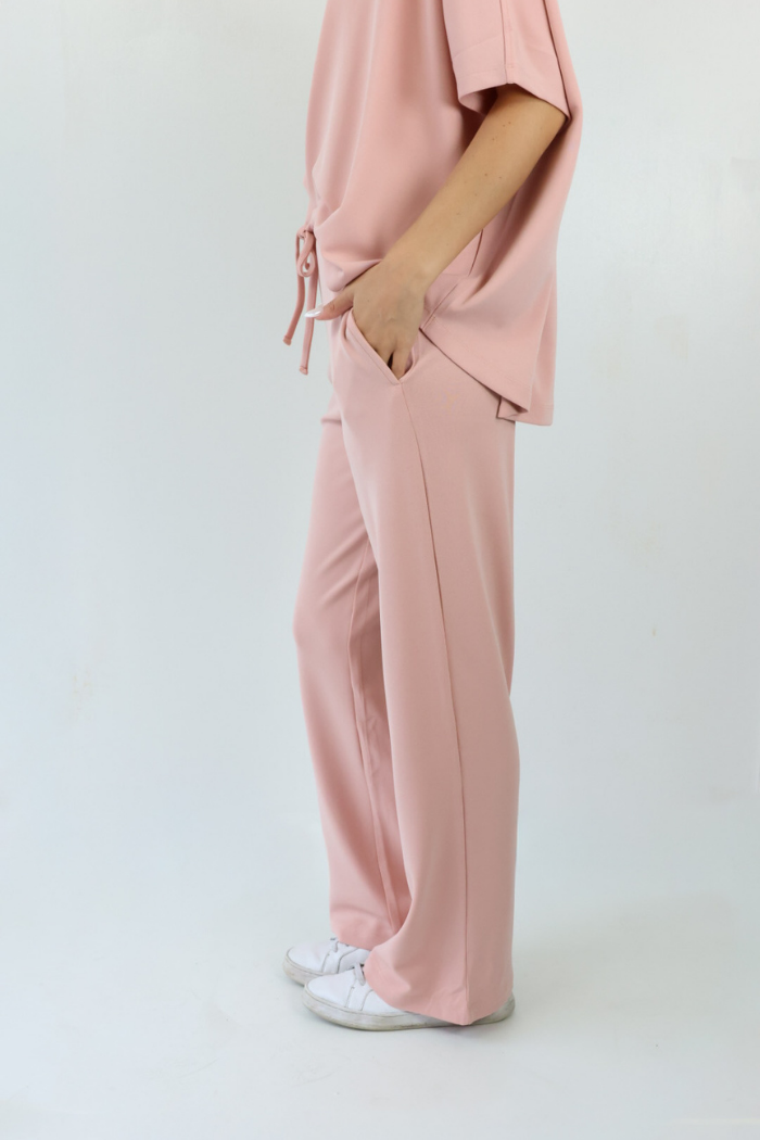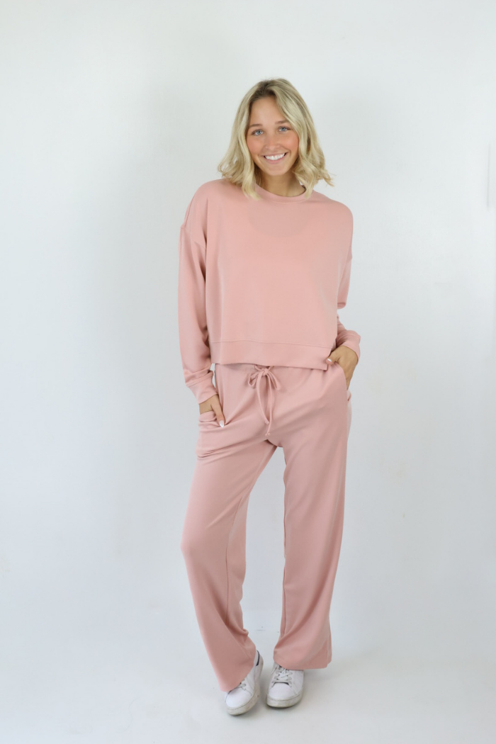 Tie Waist Scuba Wide Leg Sweatpants in Pink