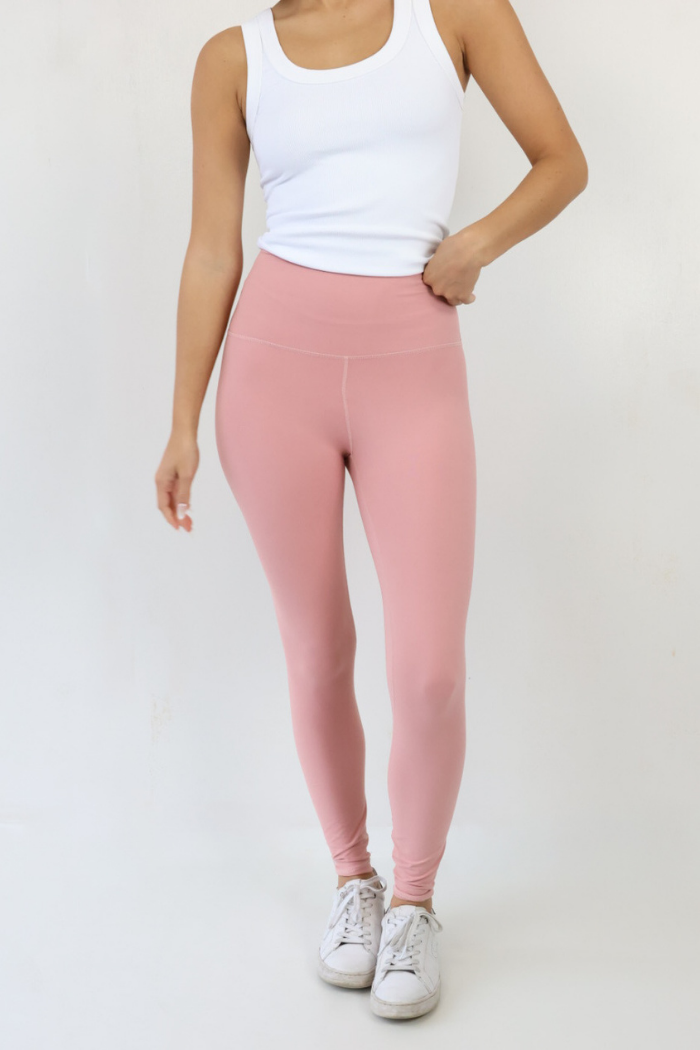 Move with ease in these butter-soft pink leggings designed with a two-line yoga stitch and a convenient key pocket for active days. Their sleek, sculpting fit flatters all ages and pairs effortlessly with oversized tees, performance tanks, or cozy pullovers for a stylish Nashville-inspired athleisure look that keeps you confident from studio to street!