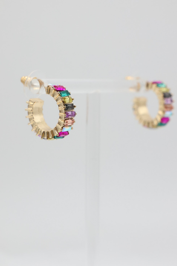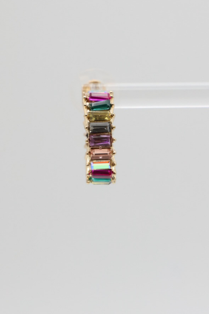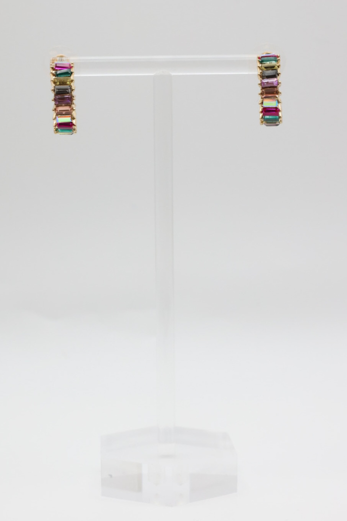 The Baguette Hoops in multicolor feature 20mm gold hoops adorned with vibrant, multicolor baguette stones for a bold, on-trend statement. Perfect for elevating Nashville outfits, they pair effortlessly with casual tees, dresses, or chic evening looks for all ages. Style them with layered necklaces, sleek hairstyles, or colorful ensembles to add sparkle and personality, creating modern, confident outfits that stand out and keep you looking effortlessly fashionable!