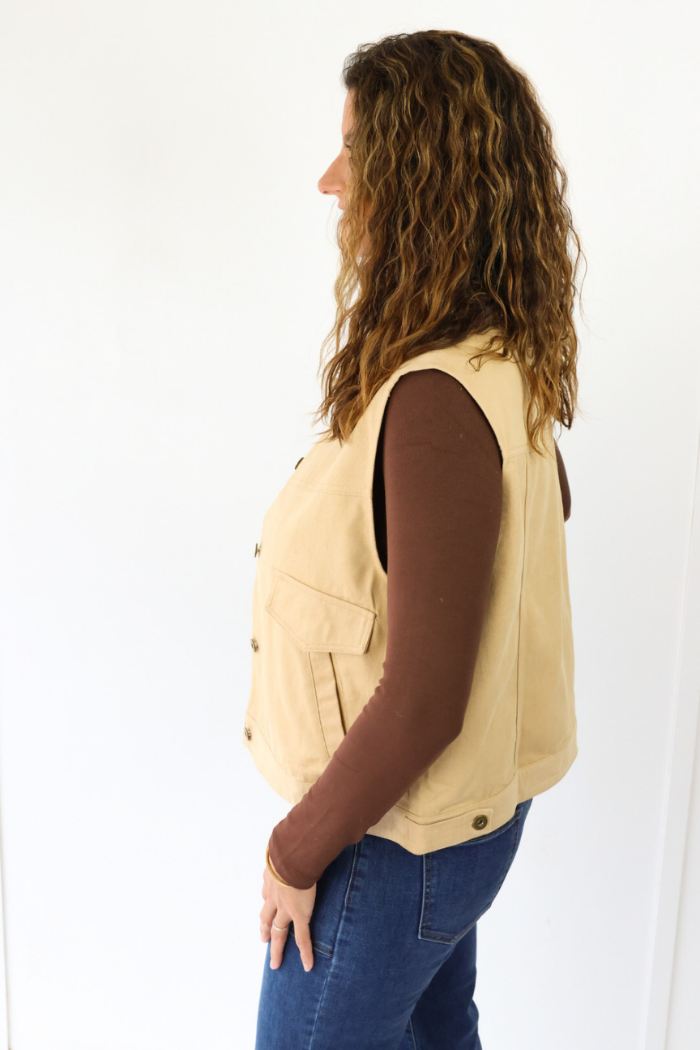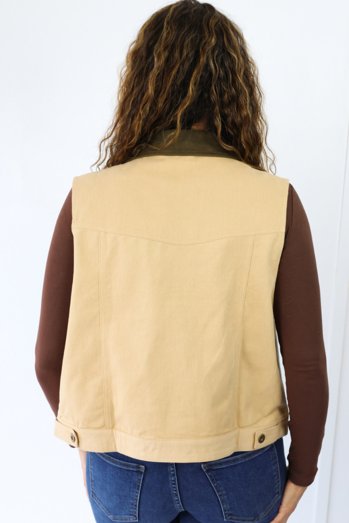 Contrast Collar Button Down Vest in Taupe