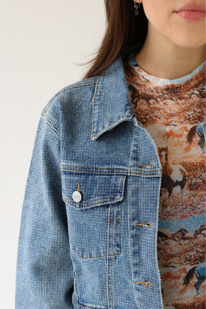 Crystal Cropped Denim Jacket