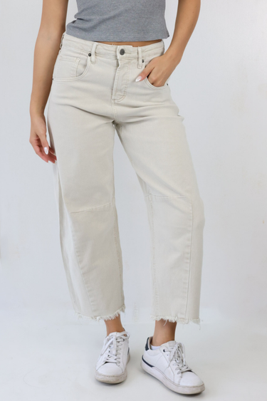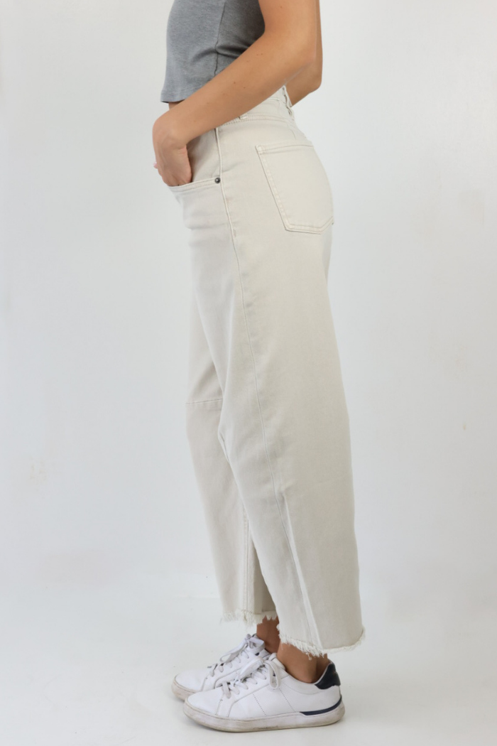 High Rise Adjustable Waist Cropped Barrel Jean in Taupe