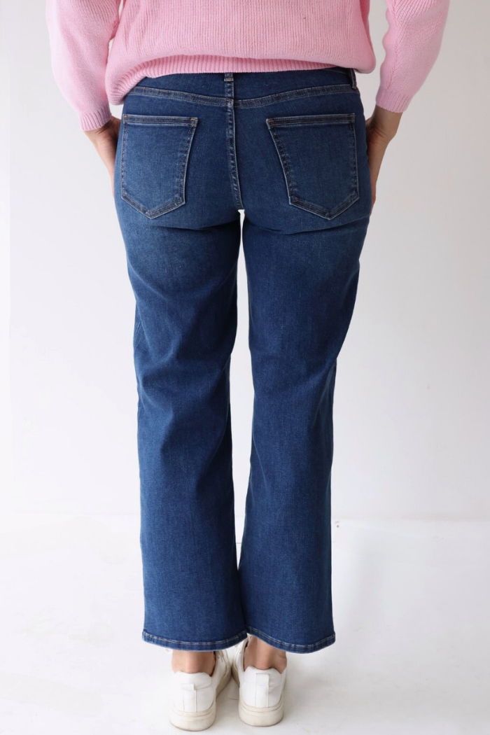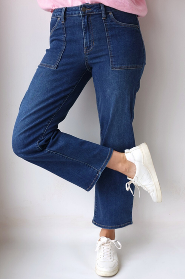 Elevate your everyday denim with this patch pocket dark wash pair—featuring a high-rise fit, wide leg, and full-length silhouette. The rich dark denim makes it easy to dress up with a blouse and heels or keep it casual with a graphic tee and sneakers for your next Nashville outing!