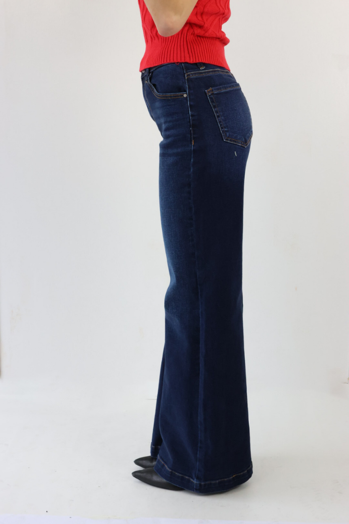 Upgrade your everyday denim with these high rise trouser wide leg jeans in a rich dark wash, designed for effortless Nashville style with a polished feel. The high rise fit flatters the waist while the full length wide leg silhouette creates a timeless, on trend look for all ages. Style them with a fitted tee, cozy sweater, or tailored blazer for outfits that move seamlessly from casual days to dressed up evenings!