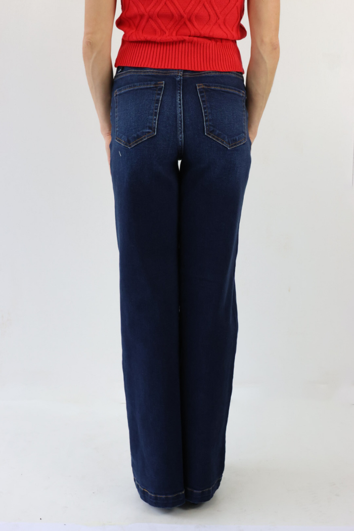 High Rise Trouser Wide Leg Denim in Dark Wash