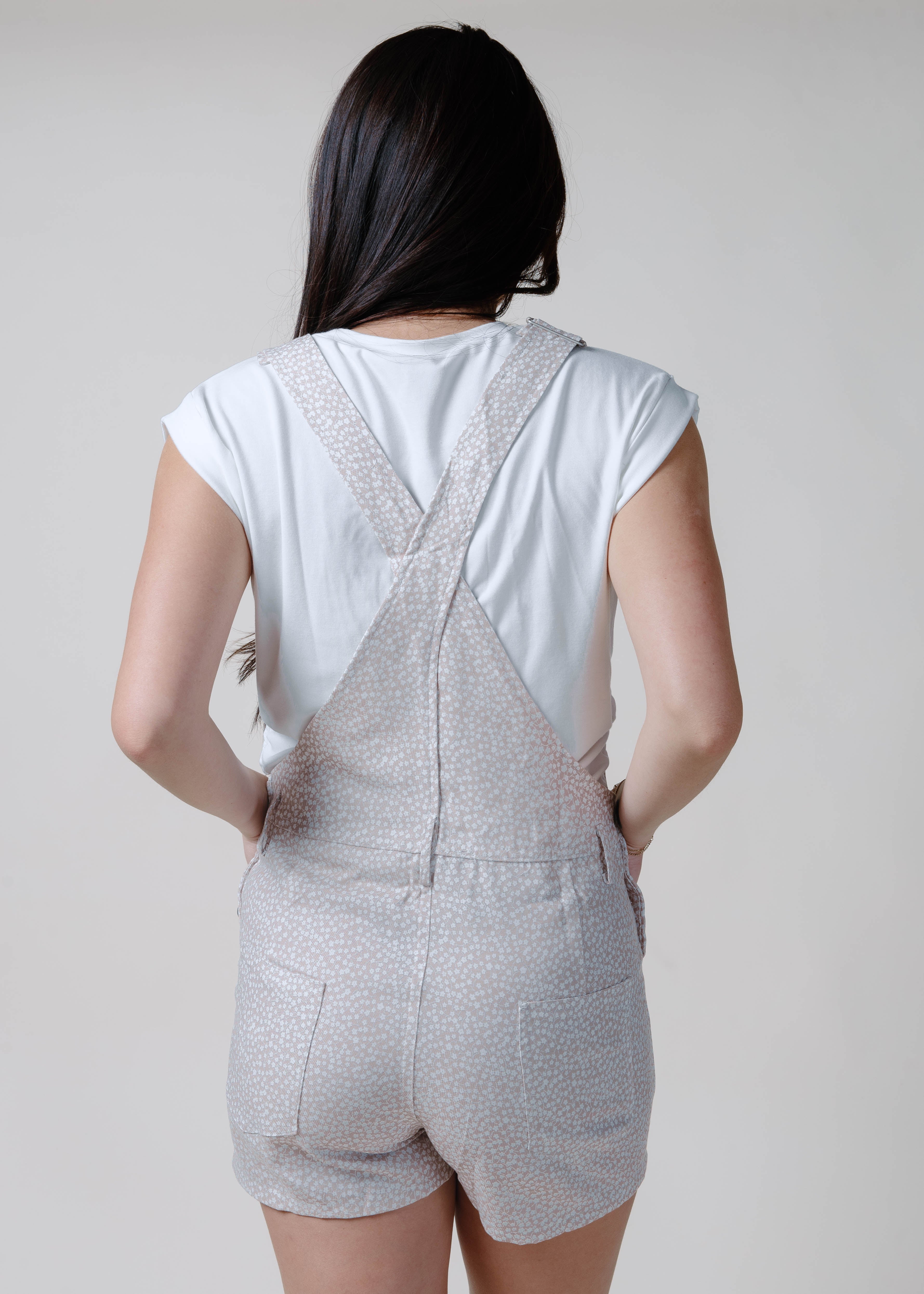 Lady Mae Floral Overall Romper - Beige