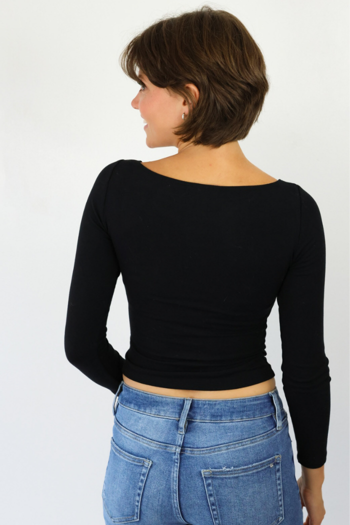 Elevate your winter wardrobe with the Boat Neck Knit Top in Black, a sleek and versatile long-sleeve essential. Its classic boat neckline and soft knit make it perfect for layering under jackets or wearing alone for a polished, minimalist look. Pair with high-waisted jeans and boots for a casual Nashville-ready outfit or tuck into a skirt for effortless day-to-night style. A must-have staple for chic, year-round layering!