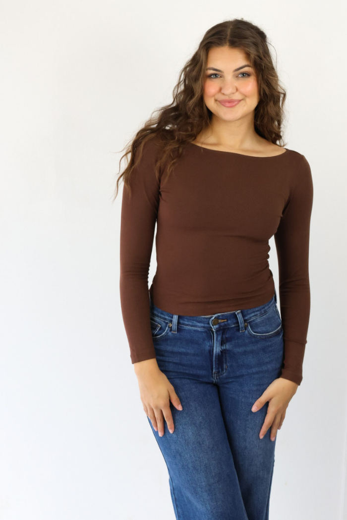 Elevate your winter wardrobe with the Boat Neck Knit Brown Top, a sleek and versatile long-sleeve essential. Its classic boat neckline and soft knit make it perfect for layering under jackets or wearing alone for a polished, minimalist look. Pair with high-waisted jeans and boots for a casual Nashville-ready outfit or tuck into a skirt for effortless day-to-night style. A must-have staple for chic, year-round layering!