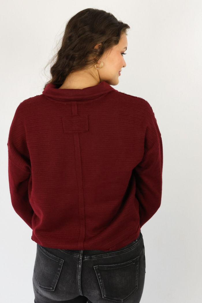 Burgundy Collard Knit Top