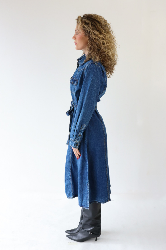 Long Sleeve Mineral Wash Button Down Denim Dress