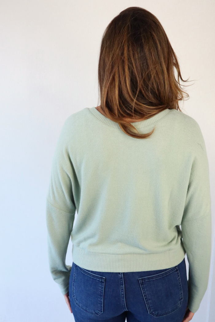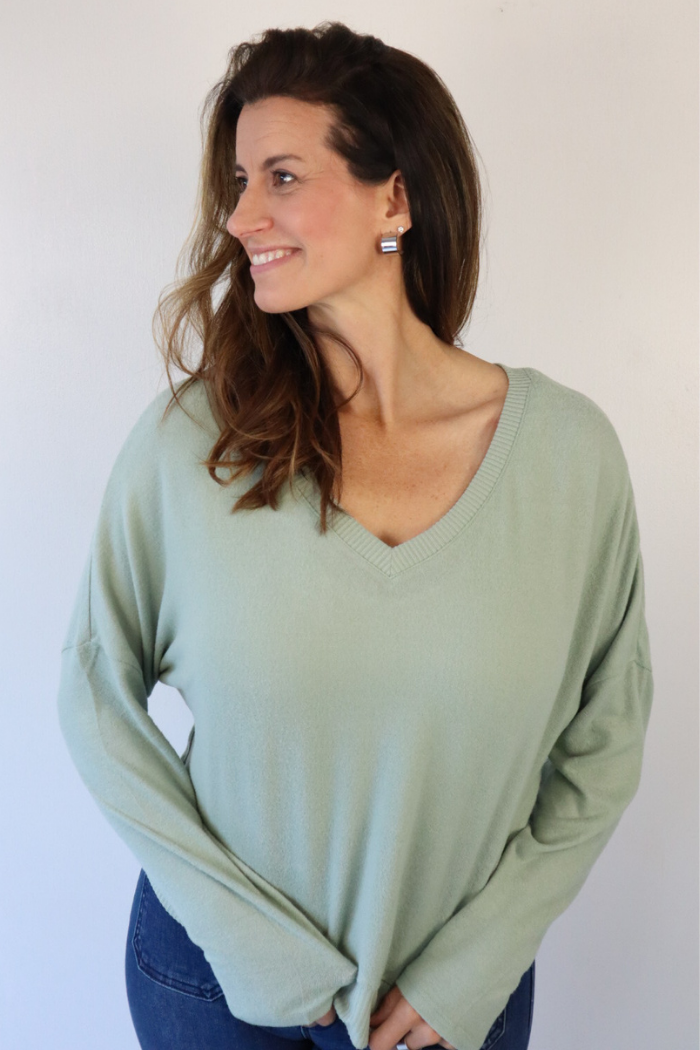 Elevate your everyday look with the V-Neck Soft Knit Top in Sage! This soft, long sleeve top features a flattering deep V-neckline and relaxed fit that feels as good as it looks. Perfect for layering or wearing on its own, it transitions effortlessly from casual days to polished nights. Style it with gold jewelry and jeans for a chic, laid-back vibe or pair with your ffavorite leggins for a cozy night in!