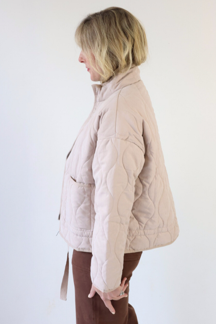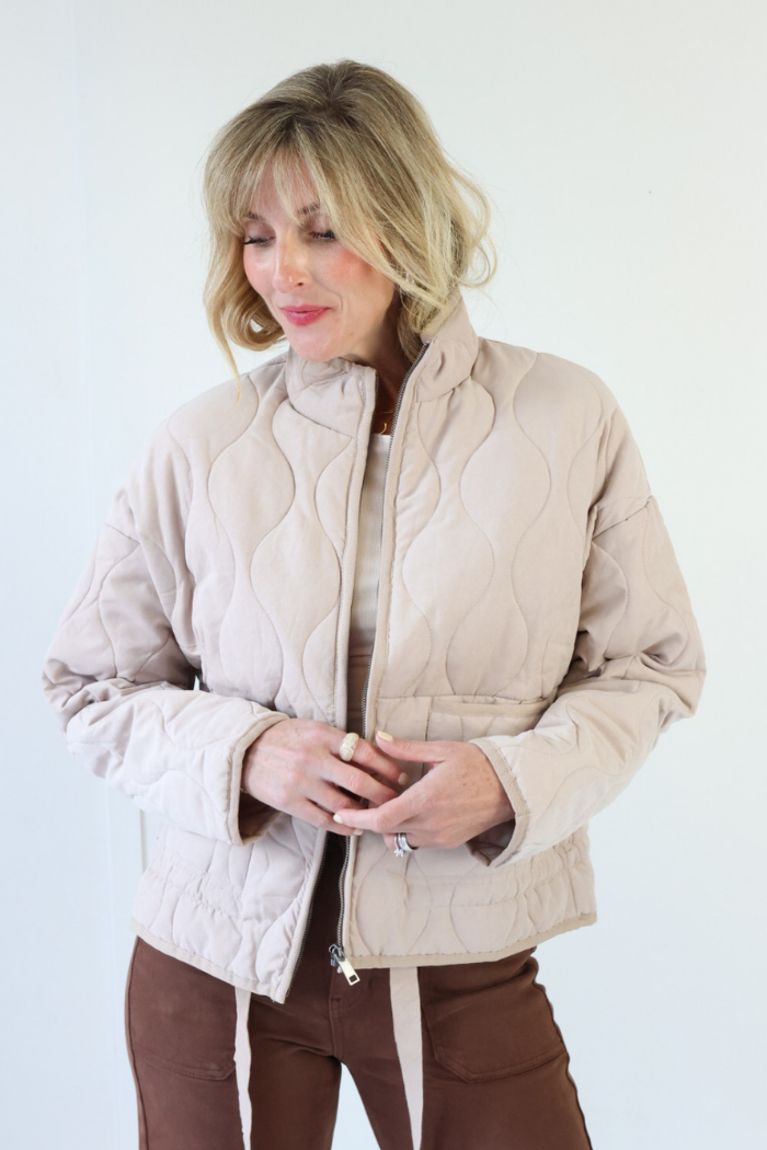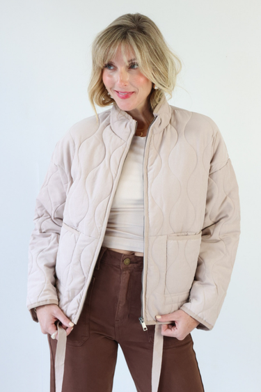 Stay warm and stylish in the Quilted Jacket in Taupe, a trendy outerwear piece perfect for colder months! Featuring a zip-up front, a structured quilted pattern, and an adjustable drawstring hem, this relaxed-fit jacket layers effortlessly over a turtleneck or a casual tee. Pair with high-waisted jeans and ankle boots for a chic, urban Nashville-inspired look that combines comfort and style for all ages!