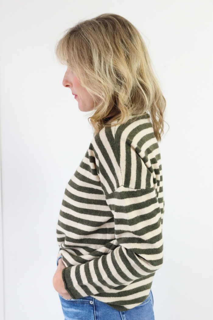 Olive Striped Cardigan in Olive