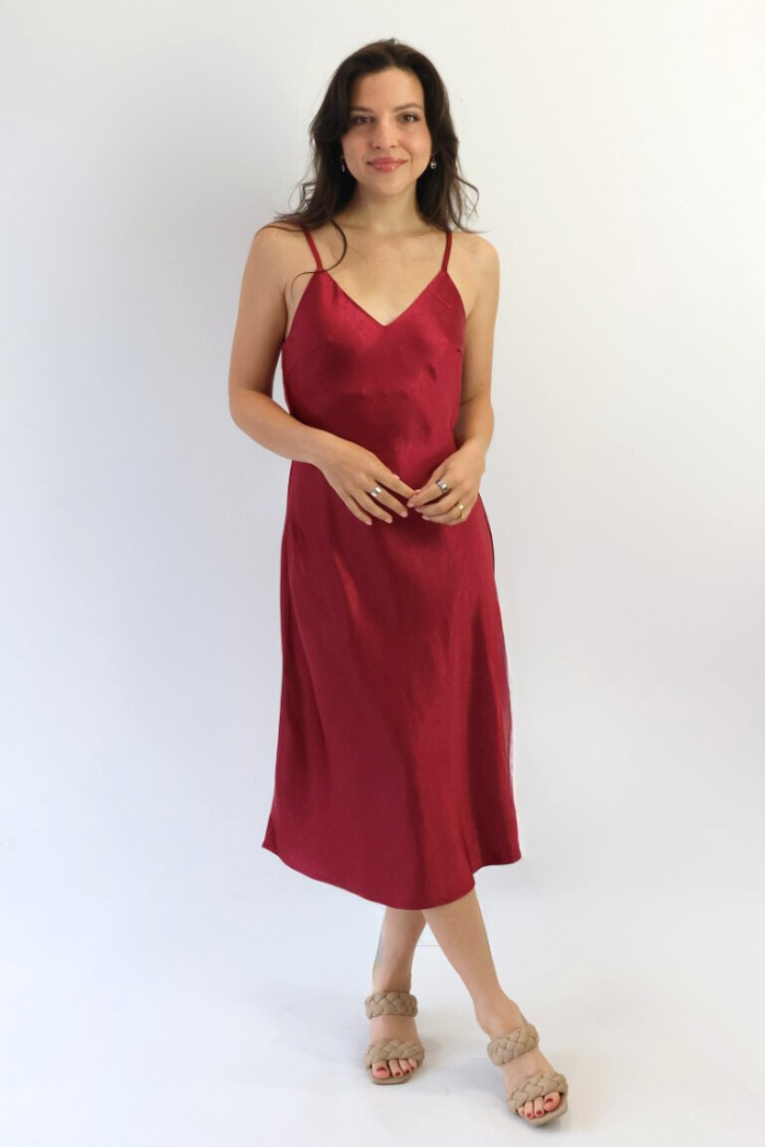 Satin Slip Dress in Burgundy