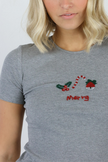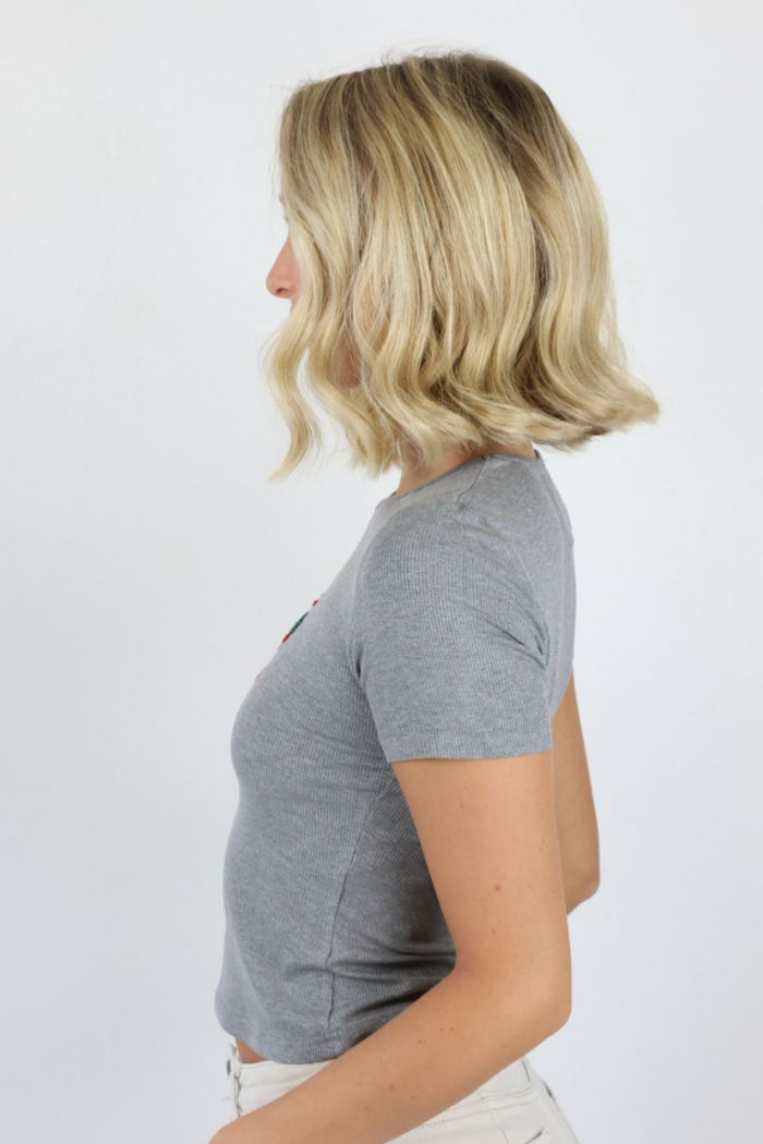 This Merry Beaded Tee in grey adds sparkle to your holiday wardrobe with its chic beaded champagne graphic and classic fit. The versatile design makes it perfect for festive gatherings, and it looks incredible paired with red denim for the ultimate holiday outfit. Style it with boots or heels for a trendy Nashville look that shines for all ages!